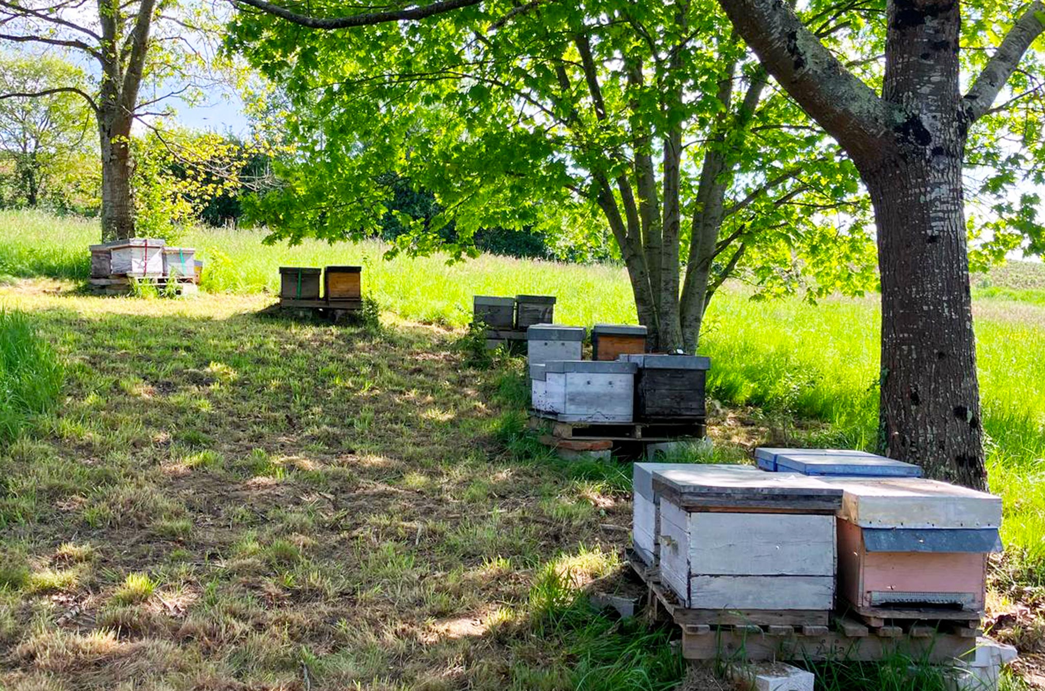 Le 27 avril dernier, Fabien, responsable de la miellerie et apiculteur passionné, a supervisé l’arrivée de 50 ruches en provenance de la Haute-Corrèze à l’Abbaye du Désert.